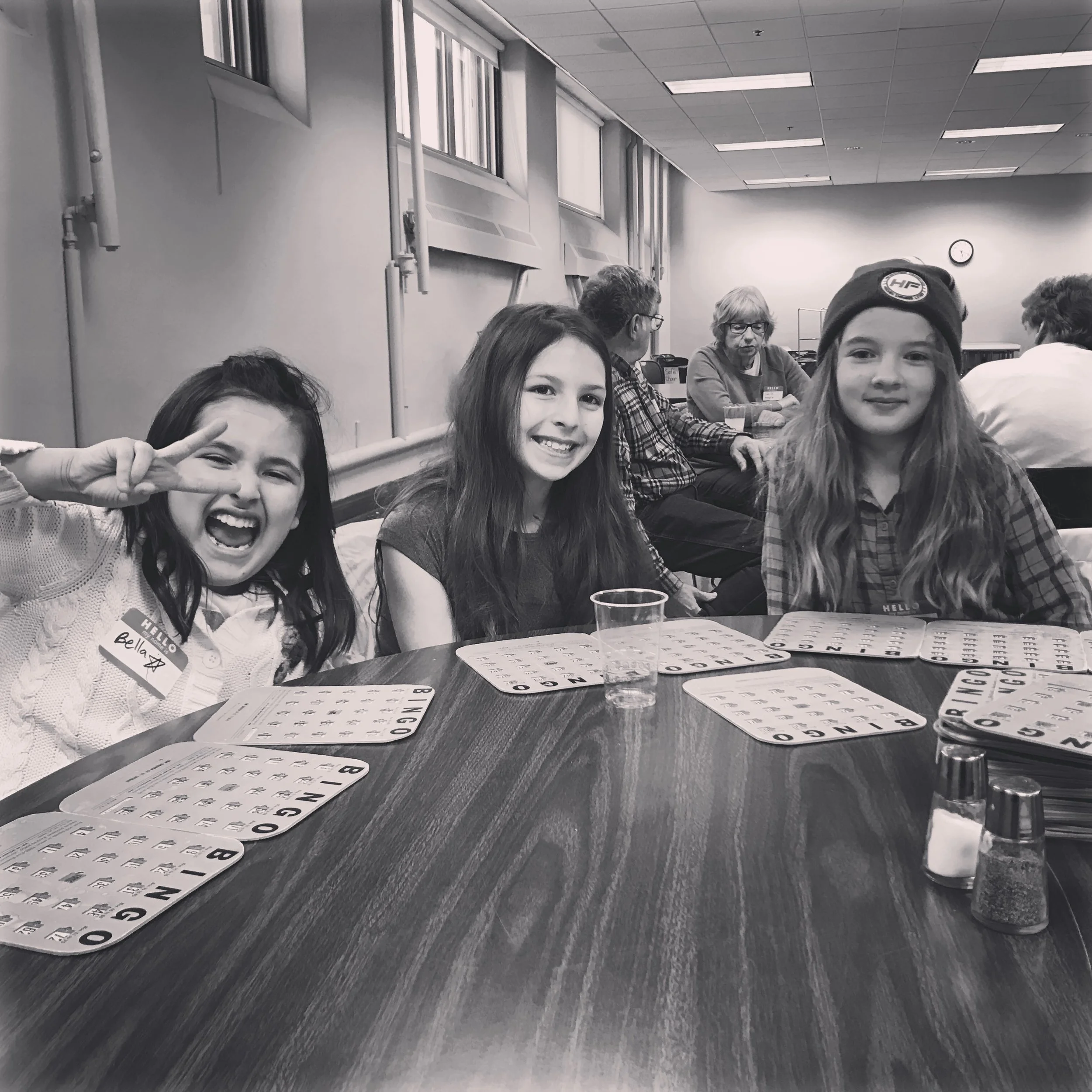 Instagram Message: The church bingo prizes were mostly an assortment of "re-gifts". These girls didn't care, they were in it to win it!