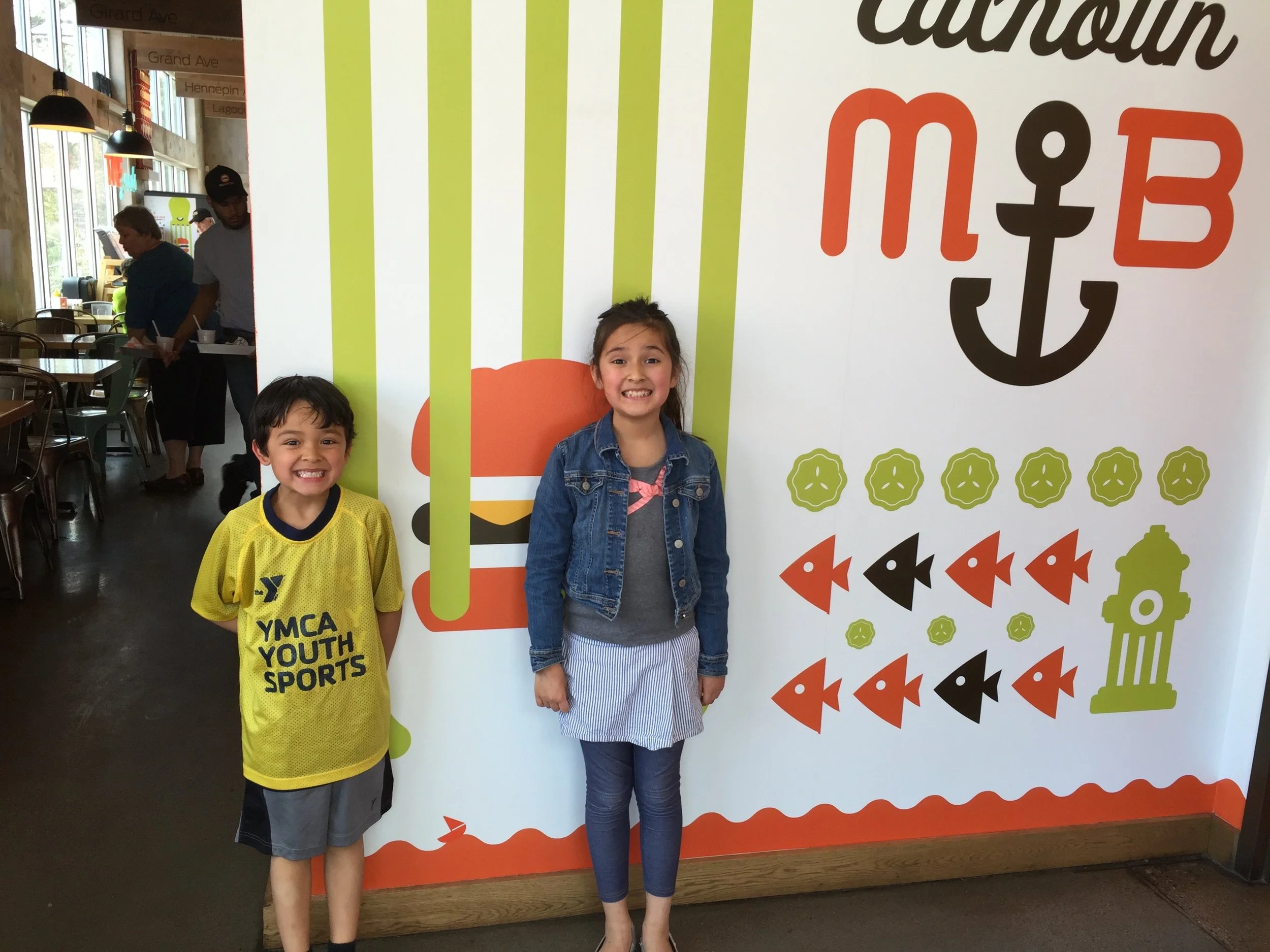 At "My Burger" Bella always gets the BOM - Burger of the Month - because her palate is very open. This place is another favorite of Beau's.