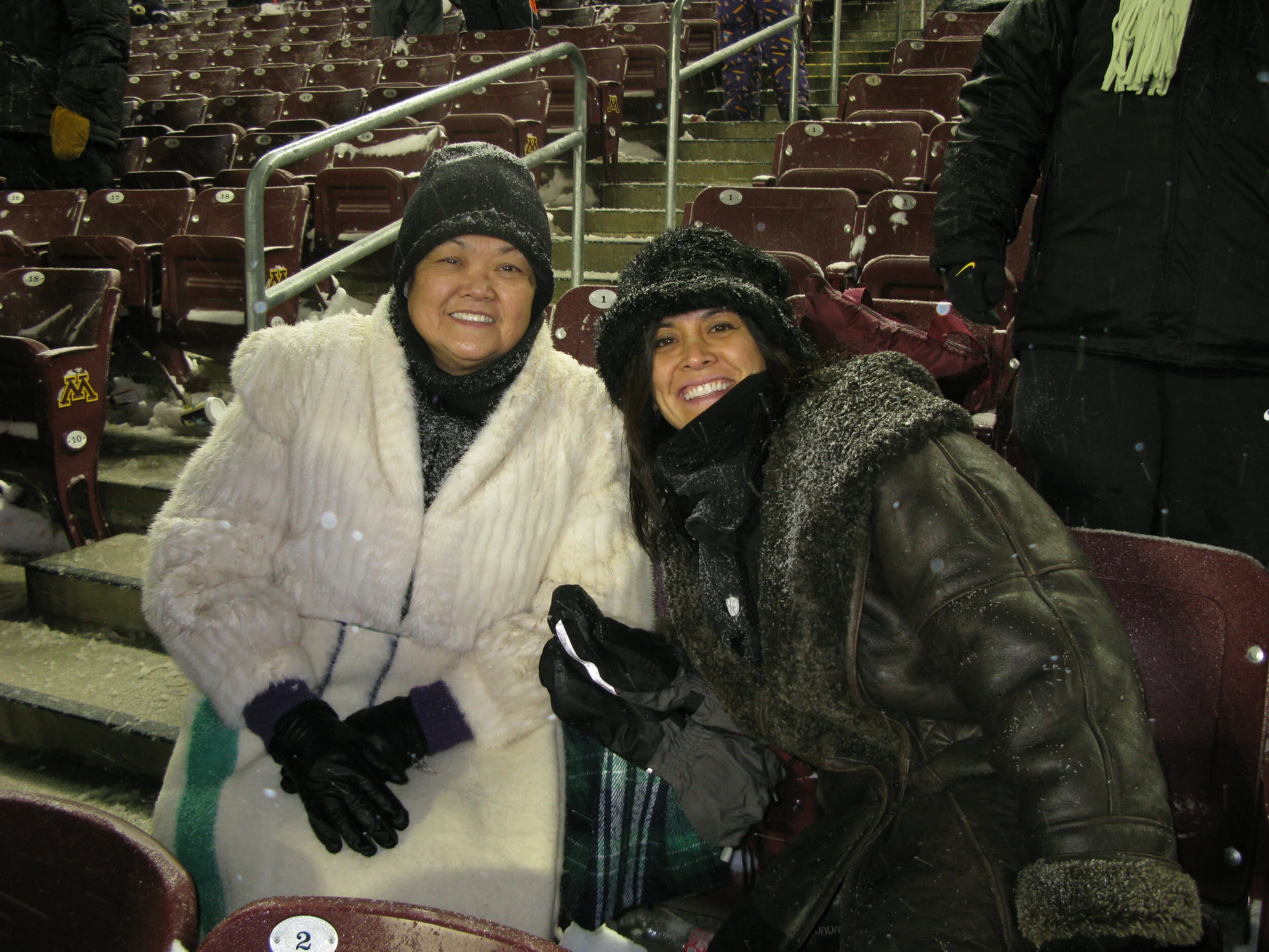 I think my mom drank Dirty Girl Scouts with us to stay warm at the game. I borrowed this jacket from my neighbor Dana.