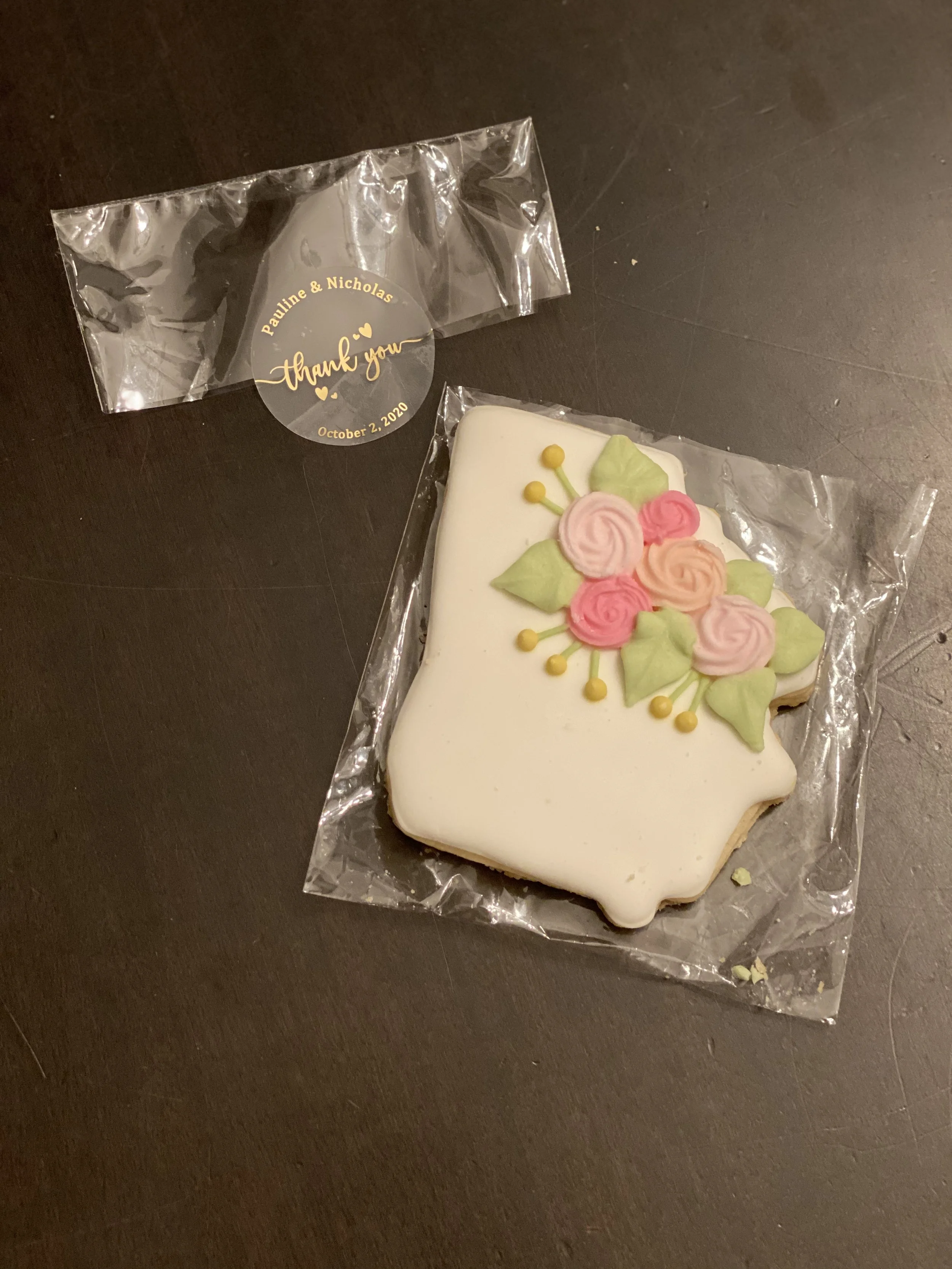 A custom made sugar cookie pinch from my cousin Pauline’s wedding party favors.