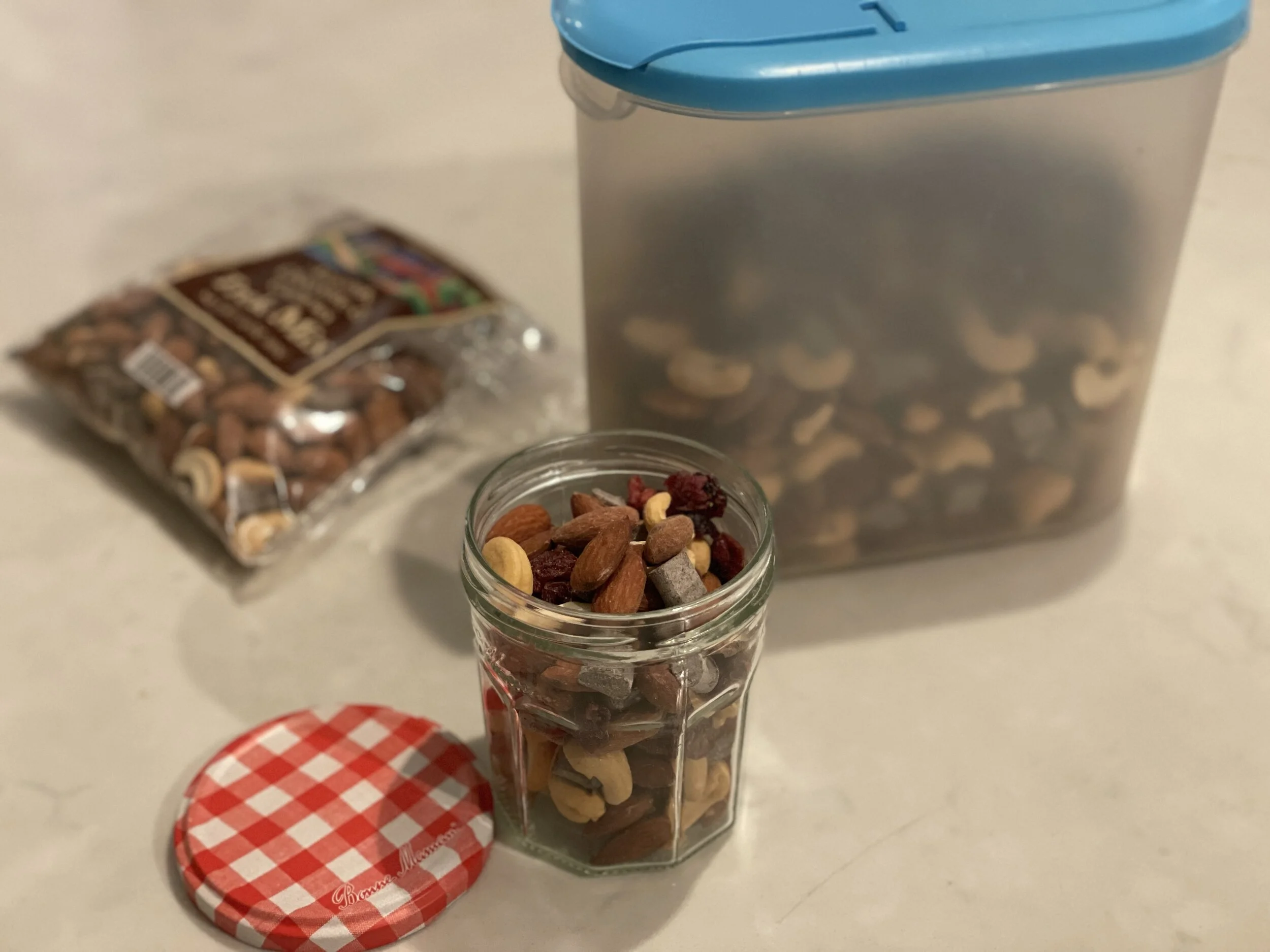 It’s portable - a cup or two of trail mix in a ziplock bag or a reusable snack sack is easy to carry with us wherever we go. Bonus: We do not need utensils in order to eat it.